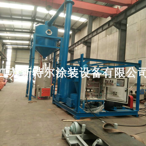 為連云港中復連眾復合材料設計制作的噴砂機、真空吸砂機整套設備交付使用 2014年4月,我公司和連云港中復連眾復合材料集團四虎影视免费永久大全-四虎8848精品成人免费网站-四虎视频国产精品免费入口-四虎4hu永久免费网站影院第一次合作,定制一套管道專用自動噴砂機,因使用效果滿意,于年底又為哈密中復連眾及貴陽中復連眾分別定制了一套管道專用自動噴砂機,自此,雙方公司成為了長期合作的生意伙伴~今年因生產需要,連云港中復連眾又在我公司采購了一套真空吸砂機,本設備是根據貴公司現有的條件及環境而專門設計的噴砂機回砂系統,利用真空吸砂的原理,將地面的砂料吸附到儲砂箱中,然后利用雙倉噴砂罐不停的工作原理,進行不間斷的噴砂作業。工件表面經高速丸料沖擊后,其表面的氧化皮、污物以及其他附著物迅速被清理干凈。本機采用真空回收磨料,配有分離器,風力主要作業延長除塵器濾芯的使用壽命;大顆粒物件從儲砂箱檢修口清理走。該整體噴砂吸砂裝置即可以滿足高效率噴砂處理,又可以實現氣力自動回收,為操作員工實現傻瓜式操作,一鍵式啟動噴砂及吸砂機工作。